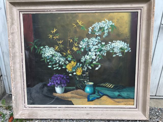 Ölbild Blumenstillleben, rechts unten sign. Clénin Otto 05.08.1899 Madretsch - 08.08.1986 Biel - Ligerz. Bild sollte fachmännisch gereinigt werden.