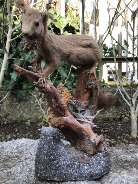 Schönes ausgestopftes Eichhörnchen. Jagdtrophäe Hausdekor Sciurus vulgaris.