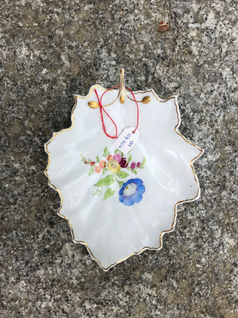 Porzellan, kleine Blattschale, filigrale Blumenmalerei,